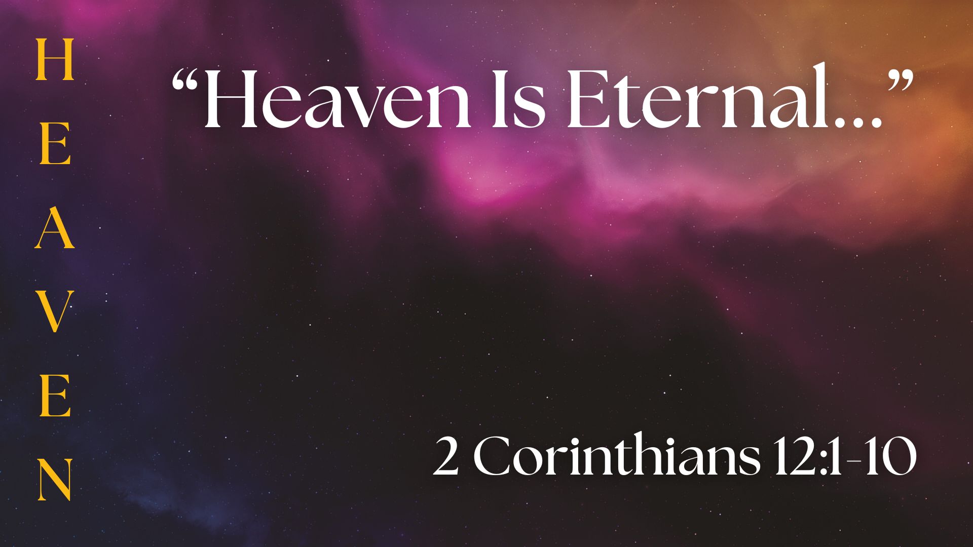 Heaven Is Eternal… May 4, 2025 Pastor Wayne Clemens Believe, Heaven, Home, Obedience, Power, Vision H.E.A.V.E.N. 2 Corinthians Heaven Is Eternal… 5-4-2025